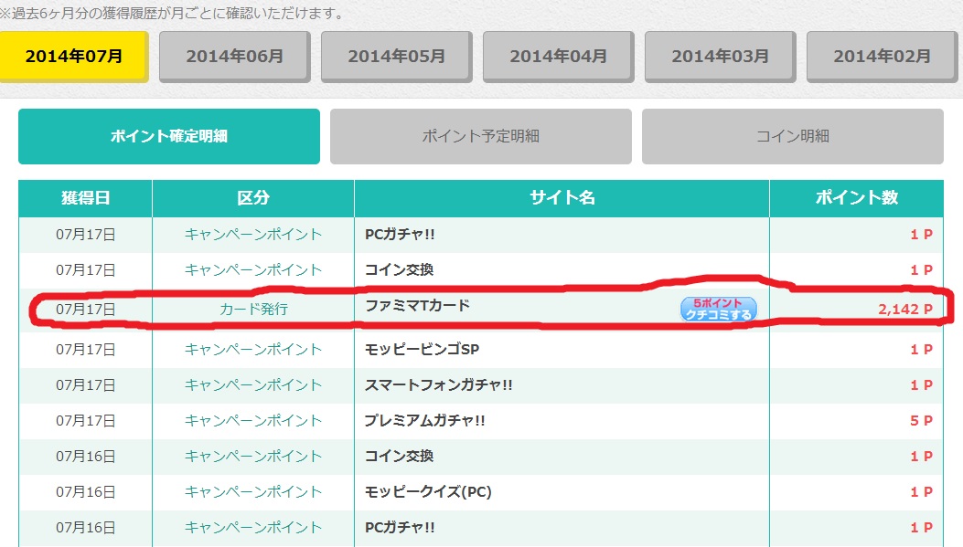 トータル = 5ポイント(+8コイン)(10コイン=1ポイント=1円)