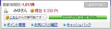 「CMくじ」に当たったり、CM視聴やアンケートでもポイントが貯まるので、実際にはもう少しもらえます。