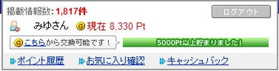トータル : 76ポイント+もぐらの分(10ポイント=1円)