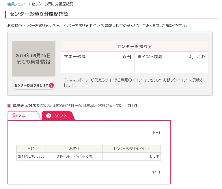 確かに、6月6日にGポイントさんからポイント移行の依頼が来ておりまして、みゆ様のnanaco番号へポイント移行しようとした履歴は残っております。