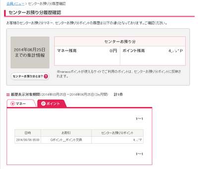 さっそく(今回ダメで、また同じ指示をされたら困るので念のため)1ポイントをnanacoへ移行。