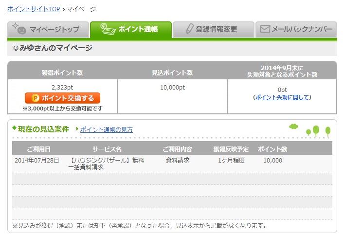 これ以外にも、クリック○pt(○はランクによって変化します)のポイントが加算されると実際にはもう少しもらえます。